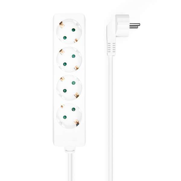 Prese multiple (ciabatta) a 4 prese senza interruttore con cavo 3×1,5 mm².nCaratteristiche:n-Prese multiple (ciabatta) a 4 prese senza interruttore con cavo 3×1,5 mm²n-Protezione per bambini per impedire che inseriscano le dita nella presan-Tensione: 250 V/16 An-Potenza massima: 3500 Wn-Interruttore: NOn-Numero di prese Schuko: 4n-Sezione del conduttore: 1,5 mm²n-Materiale del conduttore: 100% ramen-Lunghezza: 1,4 mn-Colore: biancon-Normative: RoHS, CEn-Test di funzionamento: testato al 100%