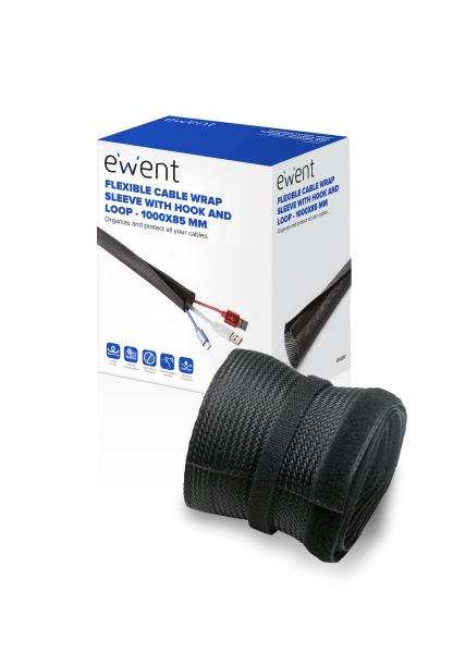 Manicotto organizer per cavi in poliestere Ewent – Chiusura in velcro – 1m – 85mm – Nero