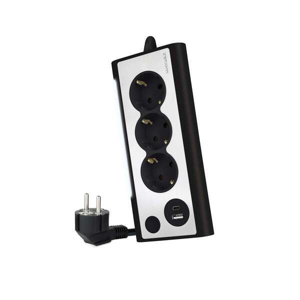 Prese multiple da tavolo con 3x Schuko, 1x USB-C e 1x USB-AnSpecifiche:n-3 prese di corrente con messa a terran-2 porte USB di ricarica (USB-C e USB-A)n-USB-A: 5V/3A, 15W. 9V/2A, 18W. 12V/1,5A, 18W.n-USB-C: